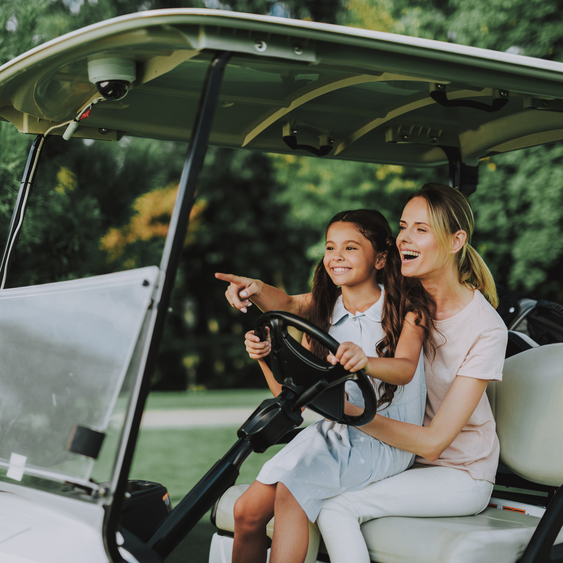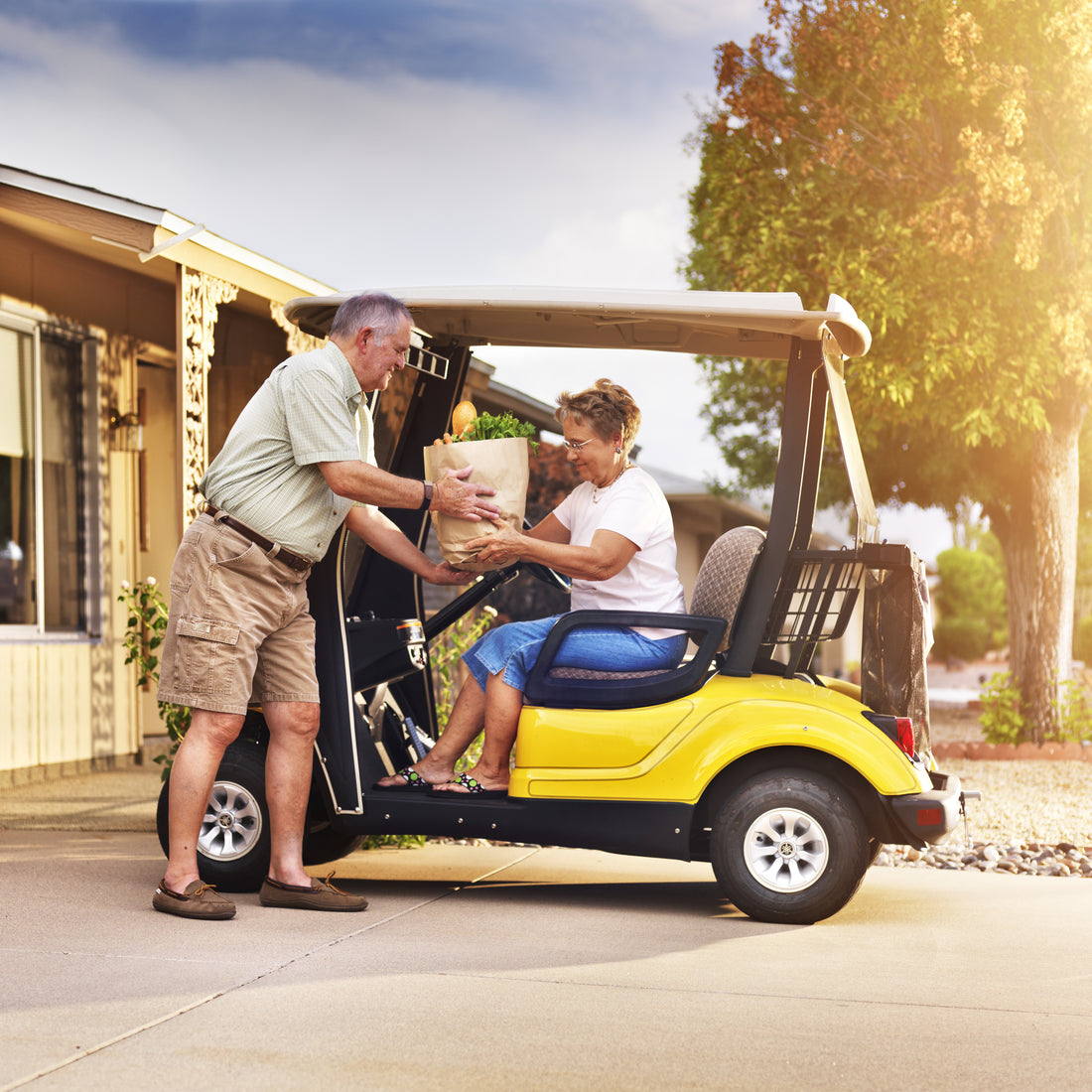 • Golf Cart with Utility Box on the back: This allows you to use an electric Golf Cart as a quiet workhorse around the property.Also, we are able to buy (and install, if you like) any replacement parts for any of those 3 brands of golf carts. Just ask to see the catalog at the store.